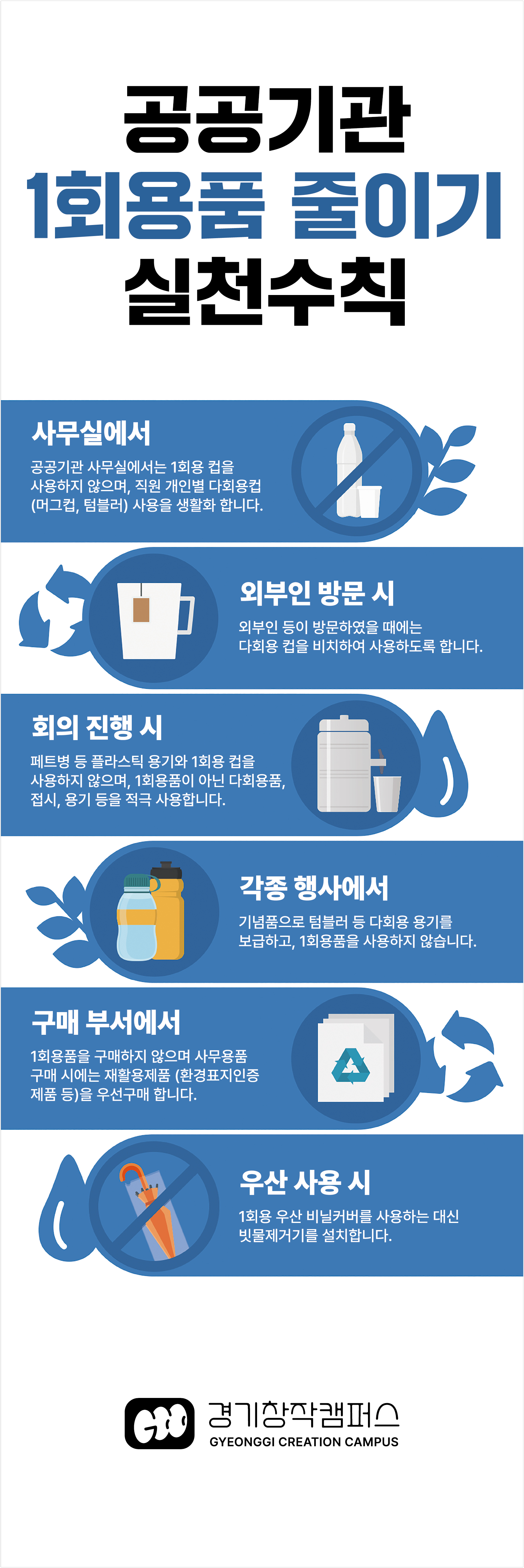 공공부문 1회용품 줄이기 실천에 따라 경기창작캠퍼스에서는 일회용품 사용 및 제공이 제한됩니다.