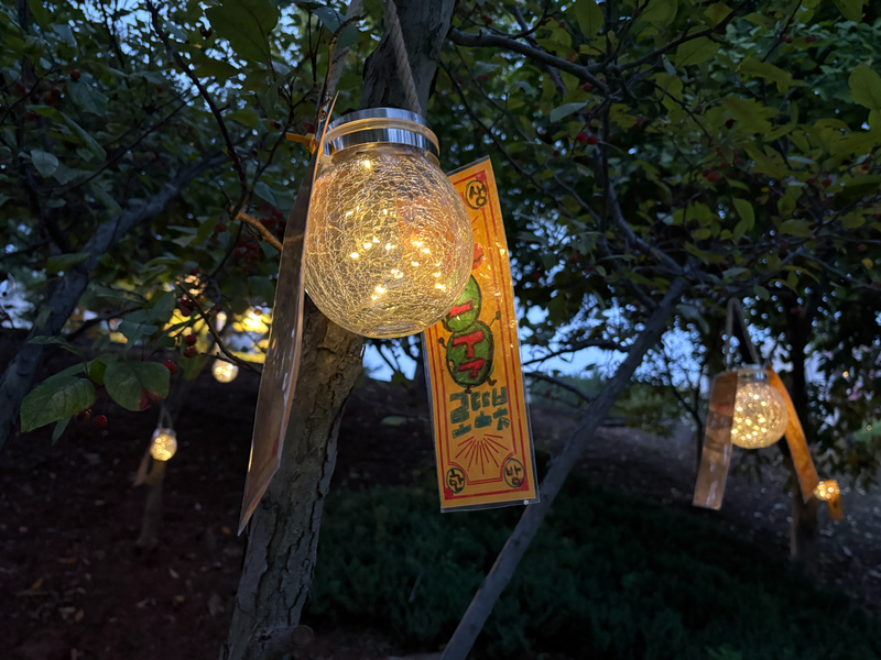④ 태양광 소원등 제작 - 완성된 소원부를 40개의 태양광 LED 조명구에 부착, 실외 설치용 소원등으로 변환
