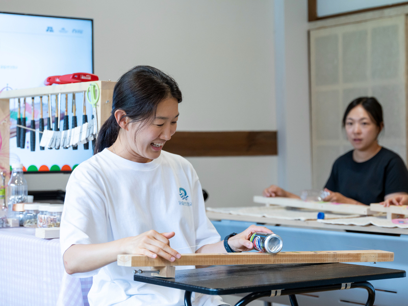 《윤슬가야금》은 버려진 나무판과 낚싯줄, 빈 캔과 페트병으로 세상에 하나 뿐인 가야금을 만들고, 직접 음을 연주하는 프로그램입니다. 버려진 것들 속에서 새로운 울림과 희망을 만들어갑니다. 전통 예술을 창의적 도구로 삼아 환경의 중요성과 자연과의 공존을 경험할 수 있습니다.