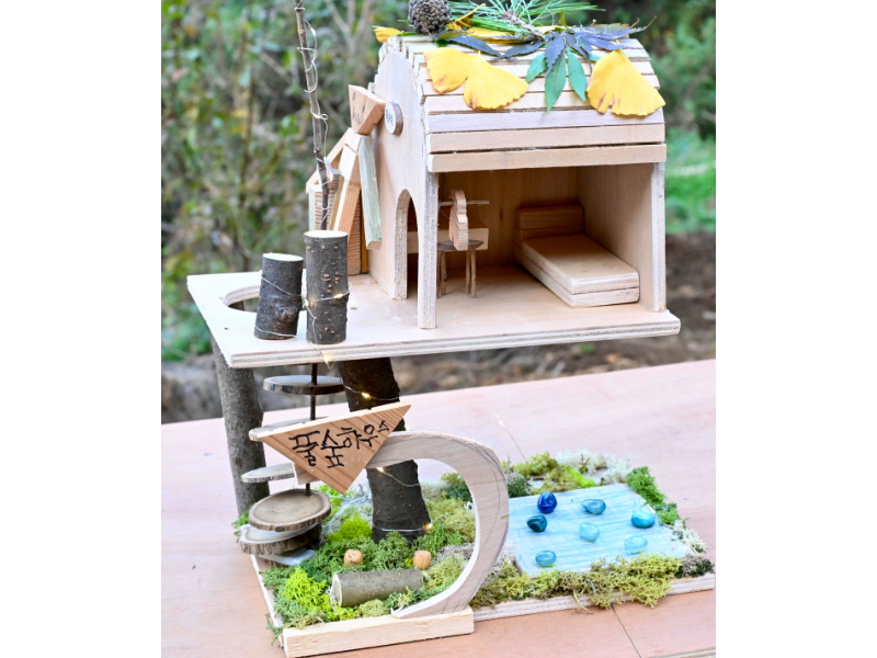 - 본 프로그램은 가족 구성원 모두의 의견을 반영해 우리 가족만의 트리하우스를 만들어 보는 체험 활동입니다. 참여자가 원하는 형태로 자유롭게 만들 수 있도록 기본 뼈대와 기둥을 미리 준비해 두며, 어린이를 동반한 가족이 함께 협력하여 트리하우스를 완성해 나갑니다. 돌, 모스(이끼), 와이어, 클레이, 천 등 다양한 자연·공예 소재를 활용해 창의적으로 꾸밀 수 있도록 재료를 제공하며, 채색이 가능한 도구도 함께 준비됩니다.