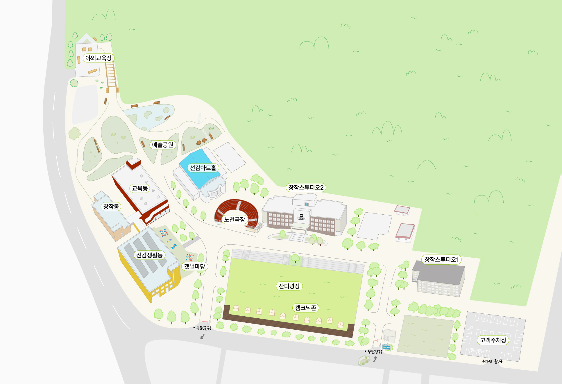 야외 공연 및 강연 등을 위한 공간으로 경기창작캠퍼스 주변의 뛰어난 자연 경관을 배경으로 자유롭고 개방된 분위기의 행사 진행이 가능합니다.