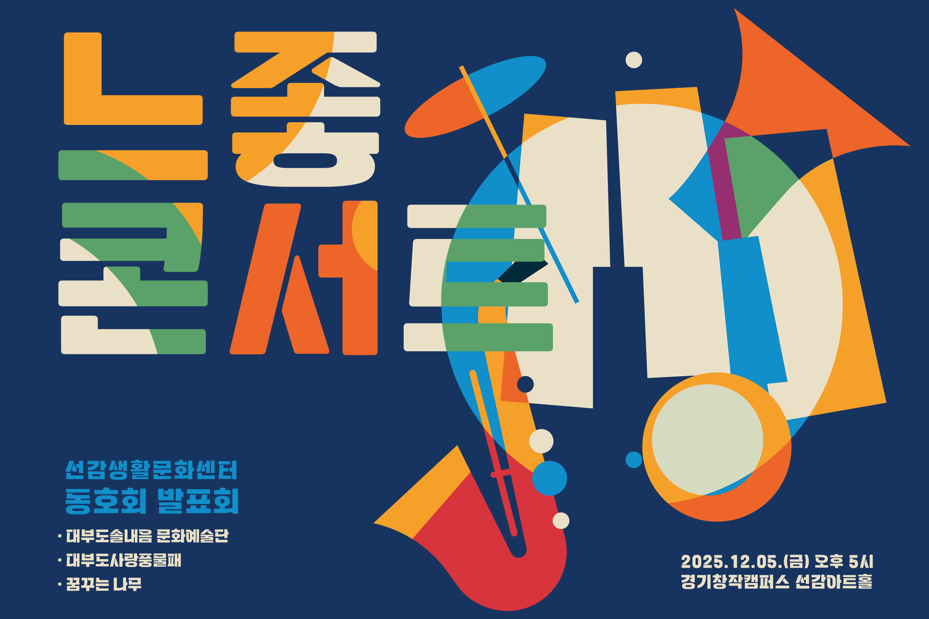 <느좋 콘서트>는 '느좋'이라는 이름처럼 느낌 좋고, 전문 무대에 비해 다소 느리지만 그래서 더 좋은, 생활문화센터의 연말 동호회 발표회입니다.